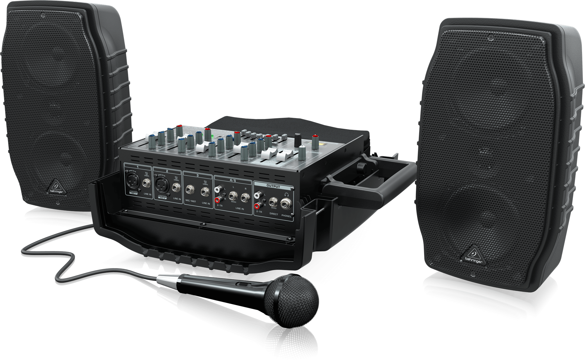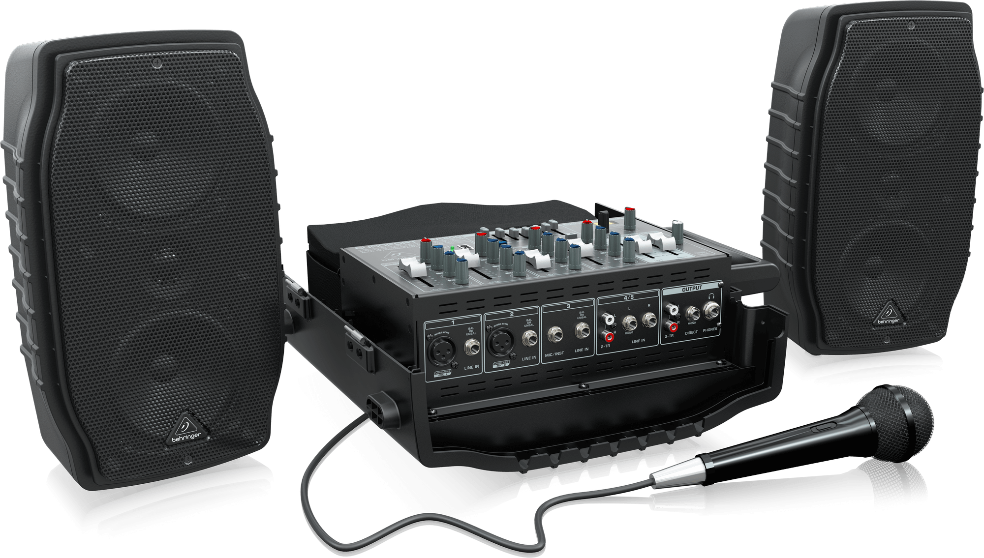• Ultra-compact 2 x 100-Watt, 5-channel portable PA system in a briefcase format