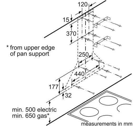 • The wall-mounted chimney hood: mount it on the wall, giving you complete freedom in your kitchen planning