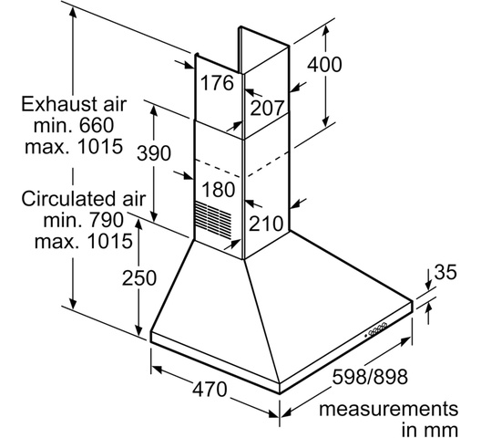 • With exhaust, the air is cleaned by a grease filter and then ducted to the outside which ensures optimal kitchen air quality.