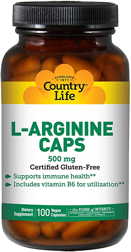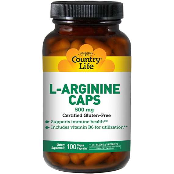 Country Life L-Arginine 500 mg with Vitamin B6-100 Vegetarian Capsules - May Help Support Immune Health - Aids Utilization - Gluten-Free