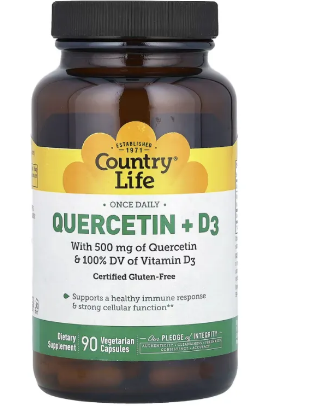 >Country Life Quercetin + D3 combines the antioxidant power of quercetin with vitamin D3 to support immune health and overall wellbeing.