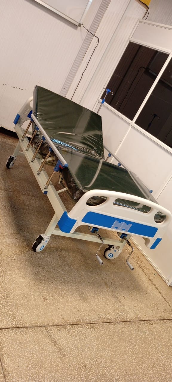 A double crank manual hospital bed is a type of hospital bed where adjustments are made manually using two separate hand cranks, typically located at the foot or side of the bed. Each crank controls a different part of the bed. Has the