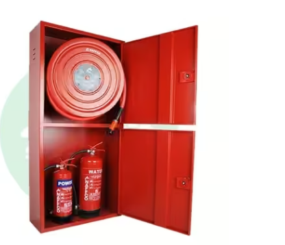 >The cabinet is spacious enough to contain a hose reel and fire extinguishers.