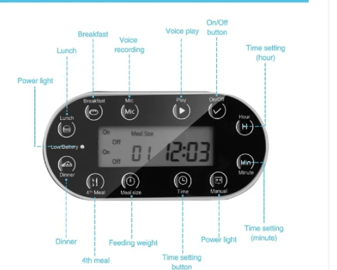 >Equipped with voice reminder, feeding time and amount.
