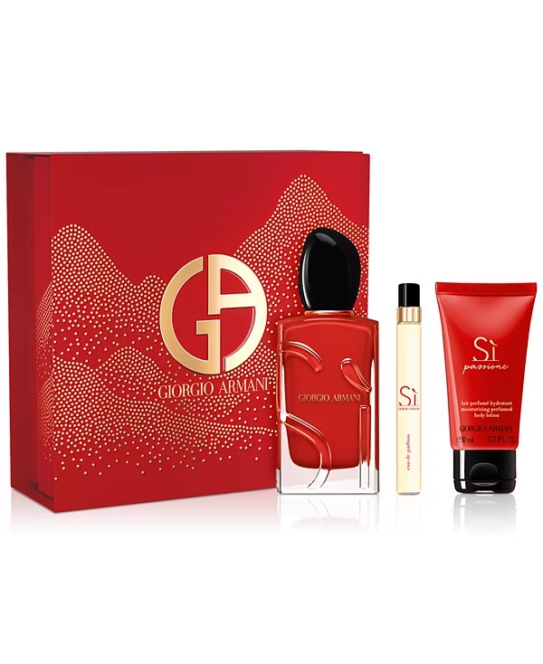 - Sì Passione Eau de Parfum, 3.4 oz.; Sì Passione Lotion, 1.7 oz.; Sì Passione Eau de Parfum, 0.3 oz.