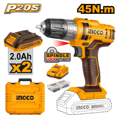 Ingco CDLI200528 20V 50Nm LI-ION Cordless Brushless Drill