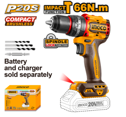 Ingco CIDLI206681 20V 66Nm LI-ION Compact Brushless Cordless Impact Drill