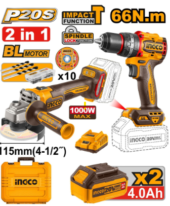 Ingco CKLI20273 20V LI-ION Cordless 2PCS Combo Kit
