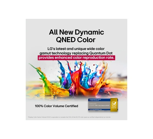 • All New Dynamic QNED Color - LG's latest and unique wide color gamut technology replacing Quantum Dot provides enhanced color reproduction rate.