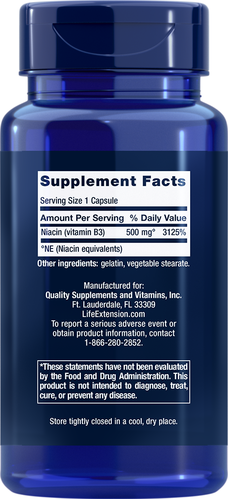 Life Extension 500mg Vitamin B3 Niacin 100 Capsules