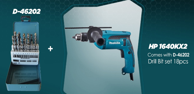 Makita HP 1640KX2 Drill+18Pcs DRILL BIT SET