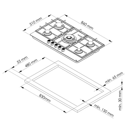 - Tempered Glass Hob - a sleek, corrosion resistant and easy to clean surface