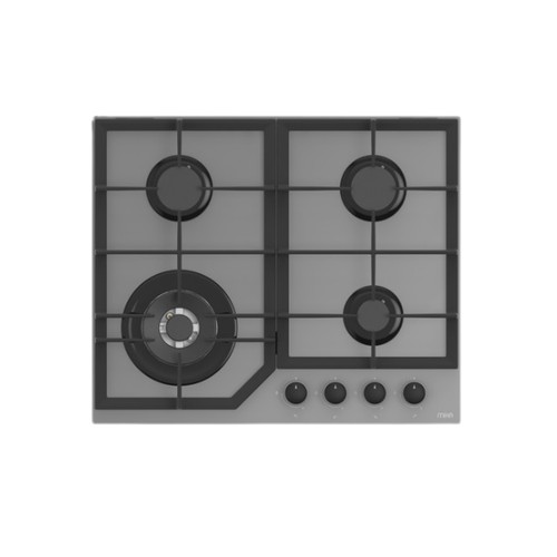 MIKA Built-In Gas Hob, 60cm, 4 Gas with WOK, ALUMINIUM SABAF Burner, Grey Glass