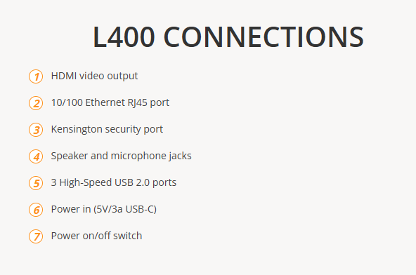 Box Contents: Each L400 includes 1 device, 1 power supply, and VESA mount kit