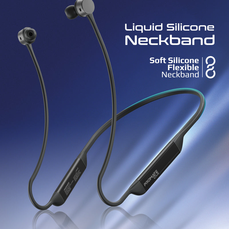 Promate High-Fidelity Liquid Silicone Wireless Neckband Earphones