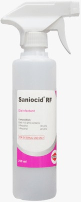 - Saturate the cloth withSaniocid RF solution and wipe surfaces