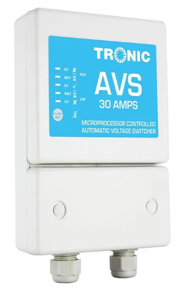 The Automatic Voltage Switcher (AVS 30) offers comprehensive power protection against over-voltage, under-voltage, power surges, and spikes. It ensures safe power restoration, preventing frequent on/off cycles and protecting against large surges after outages.
