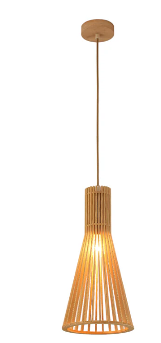 Tronic PL WD25-34 20cm Wood Pendant Lamp Tall Cone Design