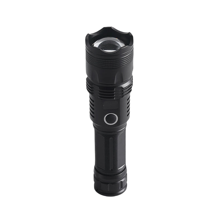 This powerful rechargeable LED flashlight delivers 1200 lumens of brightness, making it ideal for both indoor and outdoor use. With a PH70 LED bulb, zoom function, and multiple brightness modes—including strobe and SOS—it’s built to handle any situation. The rugged aluminum alloy body ensures durability, while the power indicator keeps you informed of battery levels. Featuring a high-capacity 5000mAh rechargeable battery and convenient Type-C charging, this flashlight is your go-to lighting tool for home, office, and field use.
