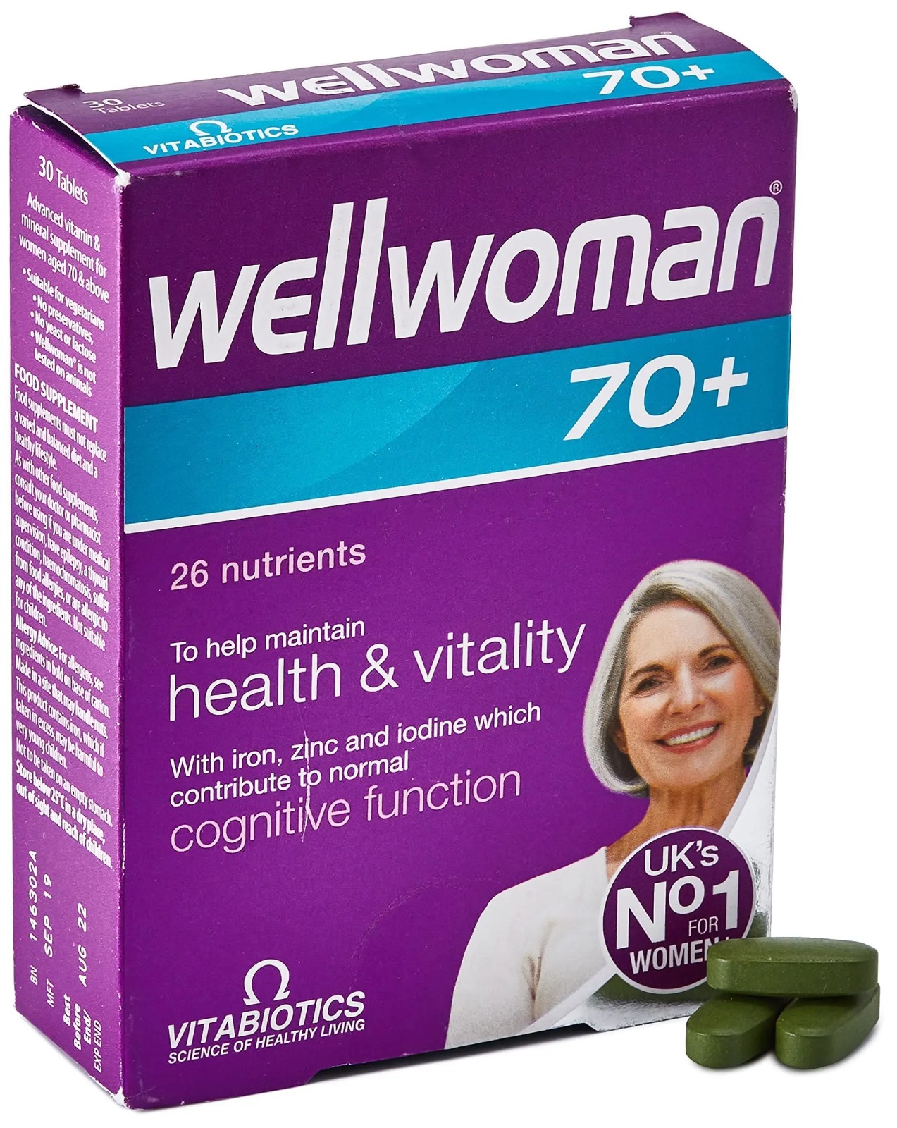 Wellwoman 70+ provides a comprehensive range of 26 vitamins, trace elements and specialist advanced nutrients specifically formulated to help safeguard the nutritional needs of women aged 70 and above.